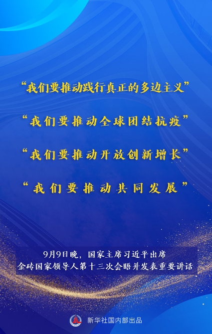 金砖国家领导人第十三次会晤9日晚以视频方式举行。国家主席习近平出席会晤并发表题为《携手金砖合作 应对共同挑战》的重要讲话。讲话有哪些主要内容,一起来看。