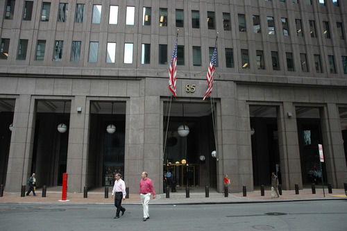 2008年9月22日,几名行人路过位于美国纽约曼哈顿岛下城的美国第一大投资银行高盛集团总部。新华社记者杨柳摄