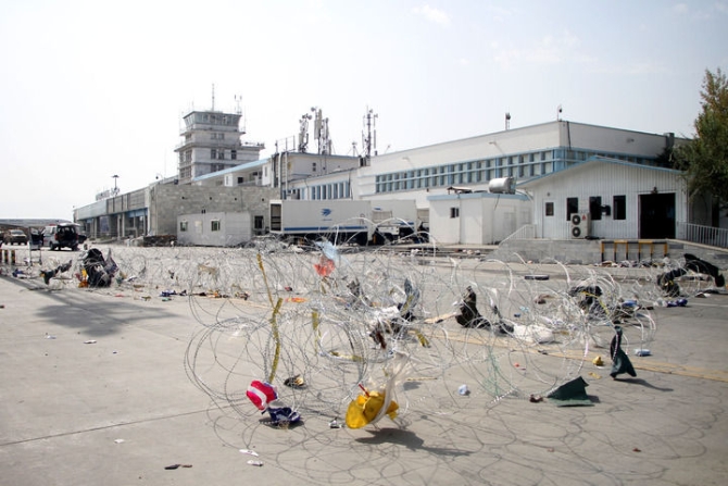 8月31日在阿富汗喀布尔机场拍摄的防护网。美国中央司令部司令肯尼思·麦肯齐8月30日宣布,美军已完成从阿富汗撤出的任务,美国在阿富汗近20年的军事行动正式结束。新华社发(塞夫拉赫曼·萨菲摄)