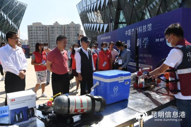 活动现场,安宁市科技馆带来的气球风轮、火山喷发、烟雾瀑布、空气超能炮、滴水成冰等表演,让现场嘉宾走进了一场精彩绝伦的魔幻科学秀。科普讲解员还带领全体嘉宾在大云端厅参观中国流动科技展、《影子世界》、百年党史科普展、科普长廊天朗环保、植物工厂、疫情防控及生物多样性等主题展。安宁市科技馆前沿创新科技之光展览自动棋子分拣机、激光雕刻机、全息风扇、自动绘墙机、立方灯光矩阵灯、人体识别互动大屏等12件自制展品,让参加活动的现场嘉宾体验了一次科普小旅行。