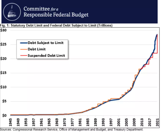 △美国国会预算办公室官网发布的美国历年债务上限图表