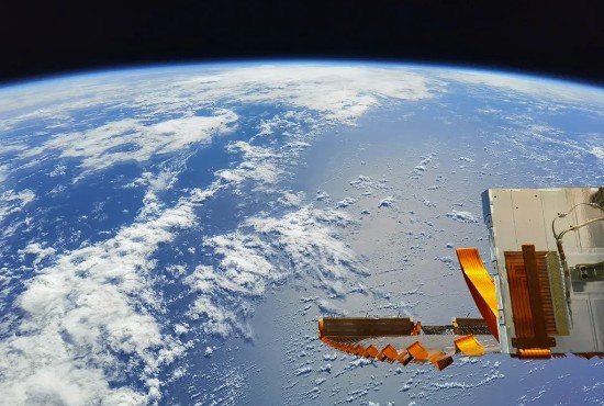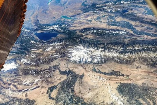 在新疆克孜勒苏柯尔克孜自治州上空,天山以北,“大西洋最后一滴眼泪”赛里木湖点缀在准噶尔盆地中。航天员 刘伯明 摄