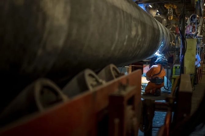 △2021年9月初,“北溪-2”项目最后一根管道在波罗的海焊接完毕。(图片来源:“北溪-2”项目官网)
