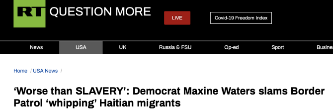 据“今日俄罗斯”(RT)报道,沃特斯22日在美国国会大厦外的一次集会上发表讲话,要求为14000多名非法越过美墨边境的海地人提供庇护。