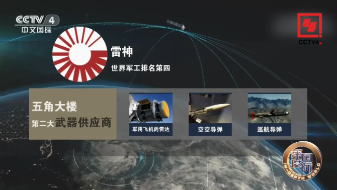 雷神,世界军工排名第四。五角大楼第二大武器供应商,美军大部分军用飞机的雷达,几乎生产了美国所有的空空导弹和巡航导弹。