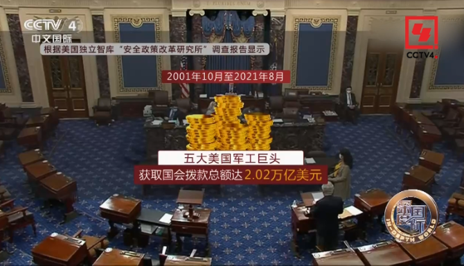 根据美国独立智库“安全政策改革研究所”前不久发布的调查报告显示,2001年10月至2021年8月,五大美国军工巨头获取的国会拨款总额达2.02万亿美元。