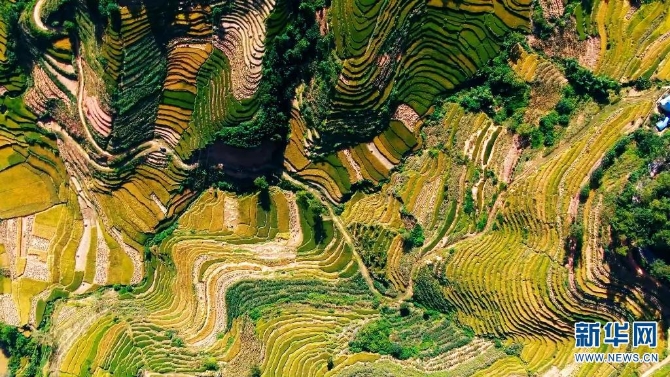 航拍西畴县新马街乡稻田(摄于9月12日)。新华网发(西畴县融媒体中心供图)