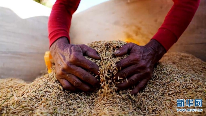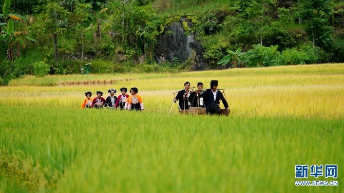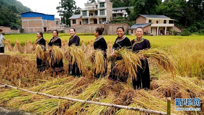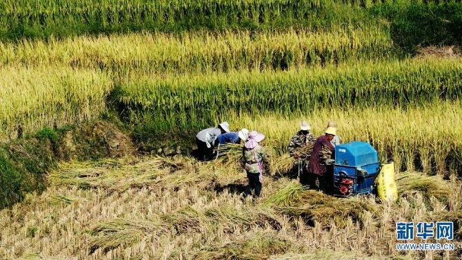 西畴县新马街乡优质稻喜获丰收(摄于9月12日)。新华网发(西畴县融媒体中心供图)