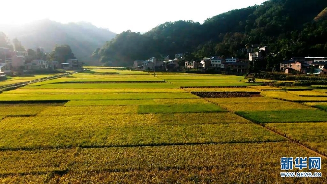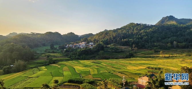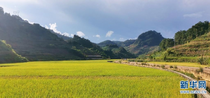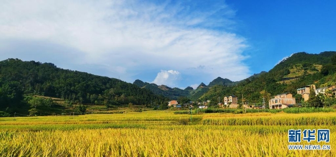西畴县新马街乡金色的稻田(摄于9月12日)。新华网发(西畴县融媒体中心供图)