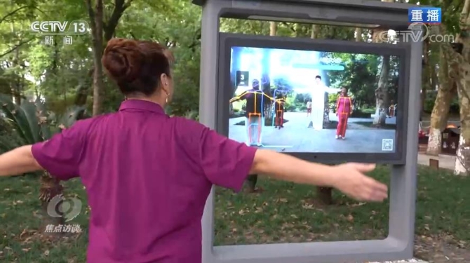 乌镇人民公园是胡晖和舞蹈队伙伴们经常来的地方。去年公园实现了智慧化改造,广泛应用了5G、AI人脸识别、物联网和智能化交互技术,带给胡晖她们高科技的惊喜。进公园大门,通过AI管家可以了解当天菜价。刷脸跑步,智慧路灯会为你加油。想练武术的,有AI武术大屏里的专业老师面对面教你。