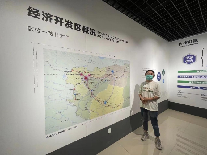 工作人员讲解喀什经济开发区概况。人民网记者 何旭摄。