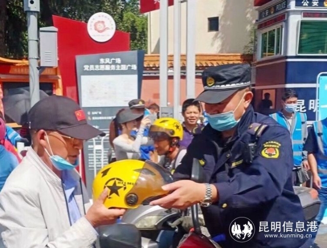 昆明信息港讯 记者戴兴 为进一步配合落实昆明市《关于进一步加强电动自行车管理的通告》规定,全力推进“一盔一带”安全守护行动, 全面提升安全头盔佩戴率和安全带使用率,预防和减少交通事故的发生。近日,昆明公安局交通警察支队二大队联合哈啰出行、拓东街道执法中队在东风广场举行了“一盔一带 安全骑行”文明春城一骑减碳主题宣导活动。