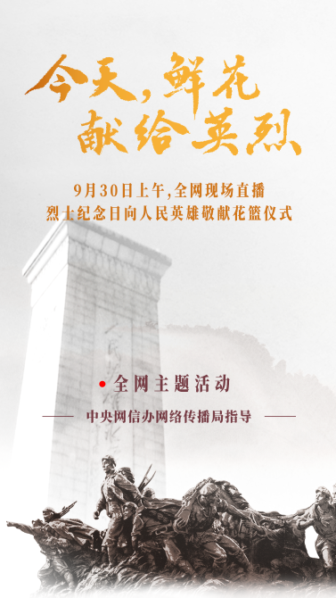 烈士纪念日向人民英雄敬献花篮仪式9月30日上午举行 习近平等党和国家领导人将出席