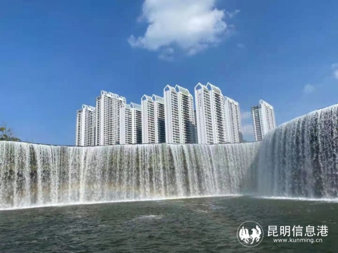 “瀑布公园作为滇池的补水工程,将牛栏江与松华坝两股水流汇集在一起后经盘龙江流入滇池。从牛栏江引来的水,每秒最大约有40立方米的水流量。为了缓解能量冲击,打造了12.5米高的瀑布,形成的落差可以起到消能作用。如果没有瀑布,水流会直接冲到对岸去。另外,修建瀑布景观时,我们还对金汁河、盘龙江进行了淤泥清理、河道排水提升改造,提升了整个片区的排水功能。” 瀑布公园项目相关人员介绍。