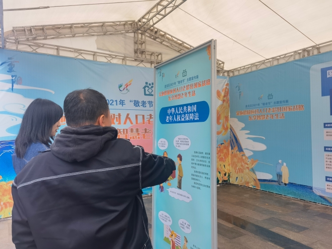 昆明信息港讯 秋风送爽,丹桂飘香。10月14日,在重阳节到来之际,盘龙区2021 年“敬老节”主题宣传展在昆明同德广场举行。