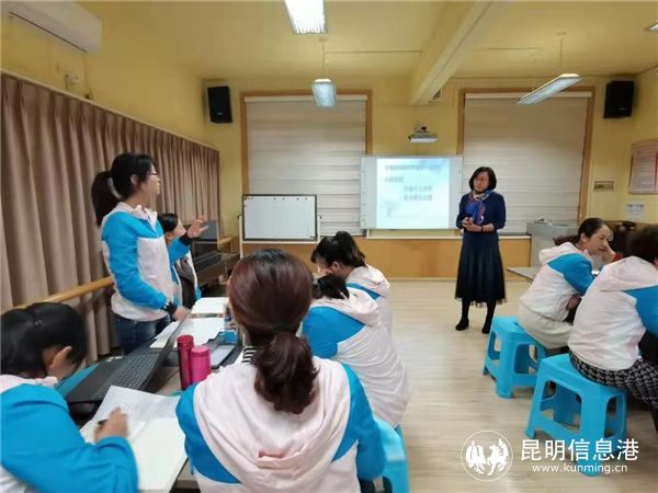昆明信息港讯 记者黄彩英 通讯员黄雯 10月18日,盘龙区新迎第三幼儿园(“新迎三幼”)邀请区进修学校培训部老师何蕙霞入园,开展“共研讨、共学习、共进步共成长”主题教研培训活动。