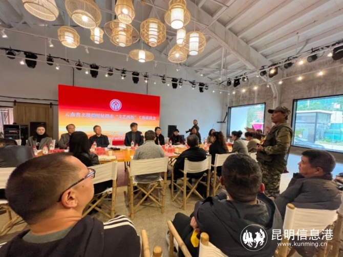 昆明信息港讯 记者罗文忆 10月25日,云南省文联党组书记、主席李勇一行带队赴昆明市对新文艺组织、新文艺群体情况开展调研工作。副主席缪开和,省文联相关部室和省级文艺家协会负责人等随行参加调研。昆明市文联党组书记、主席陆毅敏、副主席刘云坤、王金龙、西山区委宣传部部长夏芳、五华科技园区管委会副主任徐玫娟、五华区委宣传部副部长张颖等陪同调研。