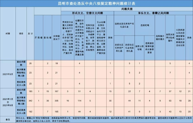 1至9月昆明市查处违反中央八项规定精神问题183起