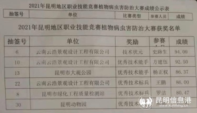 昆明信息港讯 记者杨雁 经过2天的激烈角逐,2021年度昆明地区职业技能竞赛于10月29日在大观公园落下帷幕。当天下午,现场对参加此次比赛的盆景制作、植物病虫害防治、植物修剪整形、插花艺术个人赛及插花艺术团队赛五个大赛优胜者进行了颁奖。