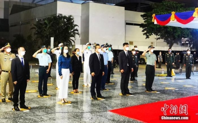 柬埔寨政府在金边国际机场举行隆重仪式,迎接中国政府和军队援柬新冠疫苗。中新社记者 欧阳开宇/摄