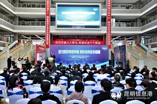 昆明信息港讯 记者合宇聪 11月26日,昆明市公安局官渡分局在螺蛳湾商贸城举办“全力防范电信诈骗、筑牢全民反诈屏障”主题宣传活动,同时,螺蛳湾商贸城反诈商圈联盟也正式成立。
