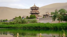 鸣沙山·月牙泉景区位于甘肃省敦煌市城南5公里处,占地面积3.12万平方公里,主要景点有月牙泉、鸣沙山。月牙泉处于鸣沙山环抱之中,其形酷似一弯新月而得名。鸣沙山东西长40余公里,南北宽约20公里,主峰海拔1715米,古往今来以“山泉共处,沙水共生”的奇妙景观著称于世,被誉为“塞外风光之一绝”。该景区于1994年被定为国家重点风景名胜区,荣获“中国最美的五大沙漠之一”等荣誉称号;2015年先后获评国家5A级旅游景区、中国敦煌世界地质公园;2016年原国家旅游局和原环境保护部认定为国家生态旅游示范区;2020年度跻身国家5A级旅游景区品牌100强榜单。