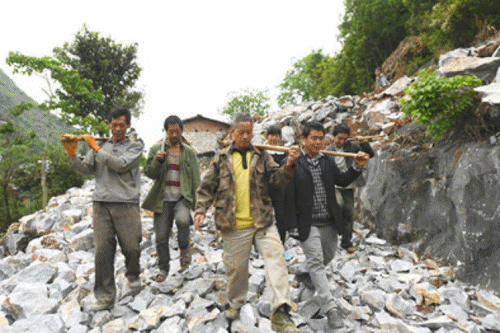 30年里,錾子、大锤、双手是他们拥有的工具,一点点凿,一锤锤敲,一处处刨,以滴水穿石的精神,西畴人民硬是开创出了一片新天地。