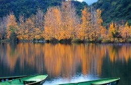 如果要看小天鹅,可以去镇前的夹江。在那里生活的几对小白天鹅,是从北方飞过来越冬的,已经习惯了每天络绎不绝的游客。它们经常到岸上的草地漫步,或是浮在江边,把长长的脖子钻入水中觅食,有时也在水面来回游弋,一副悠闲自得、超然物外的神态。它们大部分时间都形影不离,恩爱有加。