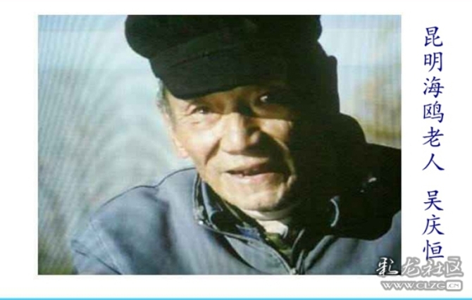 老人叫吴庆恒,毕业于西南联大,在昆明某工厂工作,由于各种历史原因,他没有结婚,一辈子孑然一身,过着孤寂的生活。海鸥到昆明后,他把海鸥当作自己的孩子,喂海鸥成了他晚年生活的主要工作和乐趣。