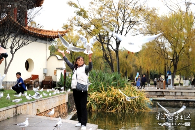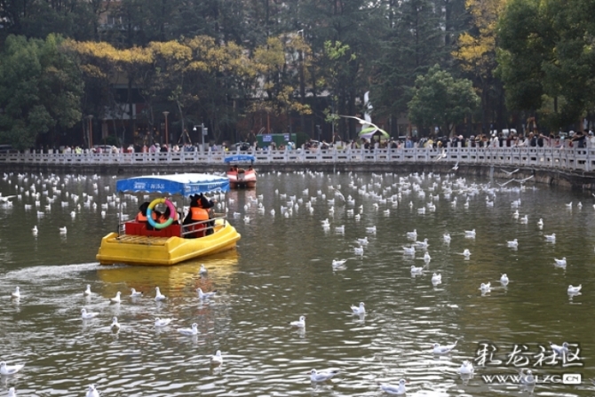 昆明翠湖是人们观鸥喂鸥的好地方,这里地处市中心,便于全家人出游。