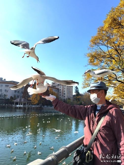 在寒冷的冬天里,昆明的人鸥同乐的场面,是我见过的最温馨的场面。