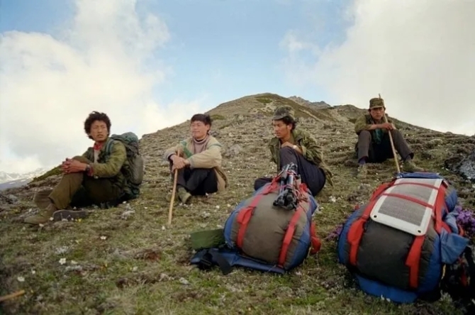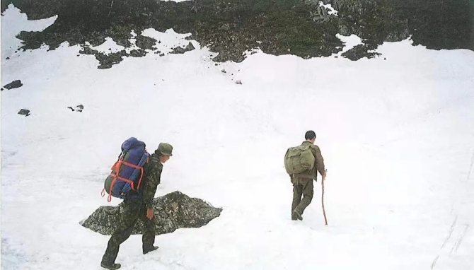 1994年和同伴在白马雪山找寻滇金丝猴群途中