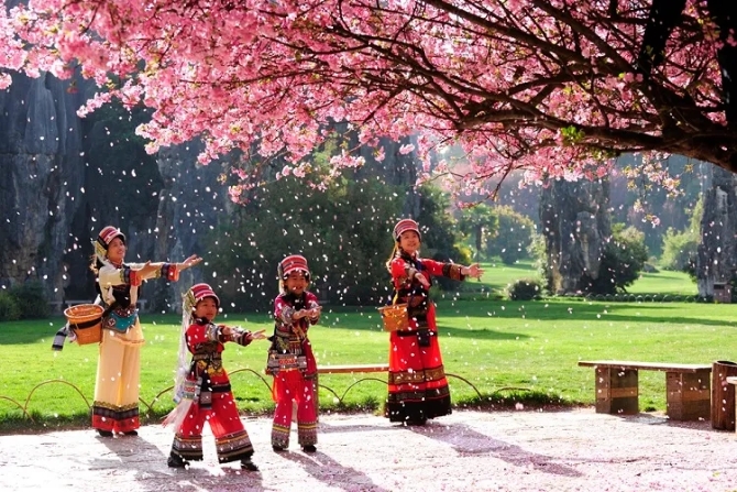 石林既是自然的风景,也是人文的风景。与石林优美独特的自然景观相得益彰的,是以“阿诗玛”为代表的彝族撒尼文化。