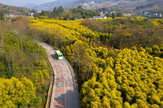 2021年11月26日,一辆公交车行驶在重庆市北碚区柳荫镇的农村公路上。