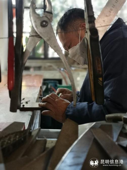 金永才的徒弟正在制作乌铜走银作品