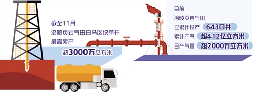 目前,涪陵页岩气田已累计投产643口井,累计产气超412亿立方米,日产气量超2000万立方米,为助力长江经济带沿线企业高质量发展、保障国家能源安全提供坚实基础。