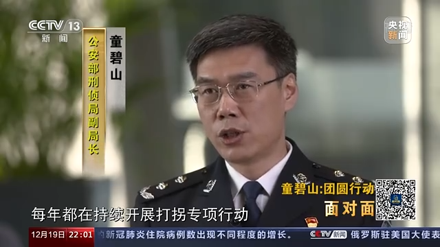 公安部刑侦局副局长 童碧山:其实从防拐工作来说,国务院是有一个部际联席会议,这里面有三十五个成员单位,公安是其中之一,是有一整套的政策,我们其实也希望把后续的工作通报给相关的部门,大家共同来关心帮助失踪被拐儿童正常回归生活。