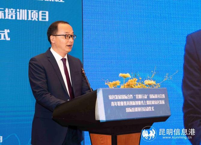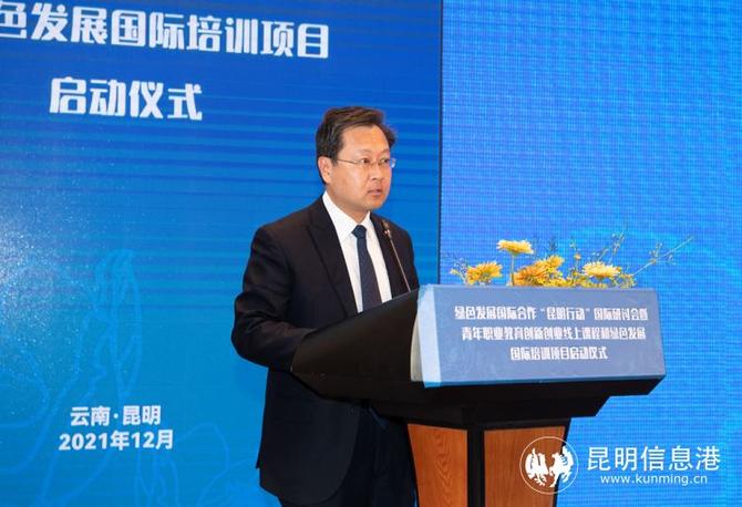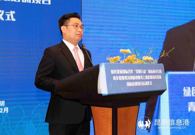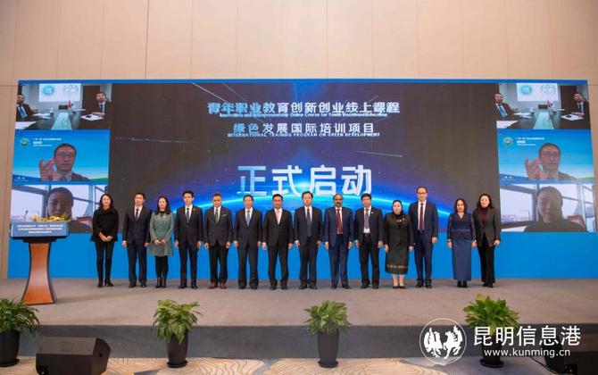 昆明信息港讯 记者苟廷廷 通讯员冯靖凯 12月20日,由昆明市人民政府主办,昆明市人民政府外事办公室与中国(云南)自贸区昆明片区(昆明经开区)共同承办的“绿色发展国际合作‘昆明行动’国际研讨会暨青年职业教育创新创业线上课程和绿色发展国际培训项目启动仪式”在自贸区昆明片区举行。