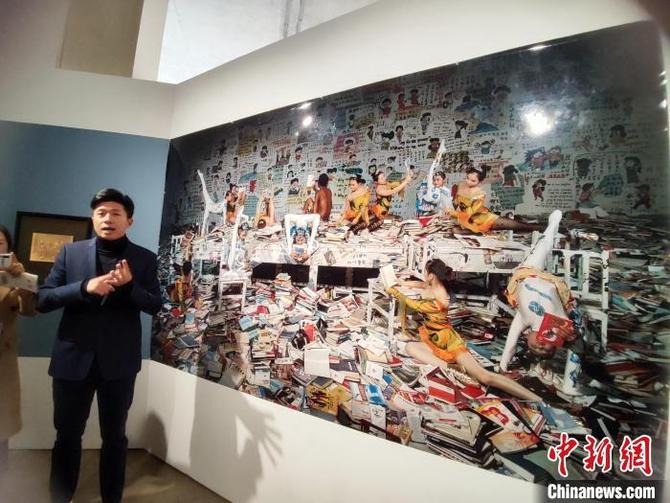 谢子龙影像艺术馆副馆长石玮向媒体介绍馆内影像。 唐小晴 摄