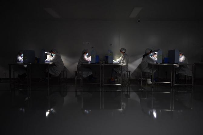 工作人员在国药集团中国生物北京生物制品研究所的新冠病毒灭活疫苗分包装车间内工作(2020年12月25日摄)。新华社记者 张玉薇 摄