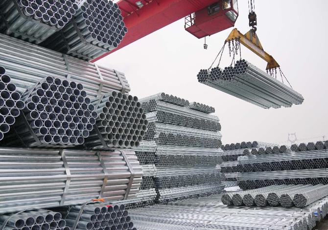 12月11日,迁安市一家镀锌管生产企业的工人操作机械设备吊运钢管。新华社记者 杨世尧 摄
