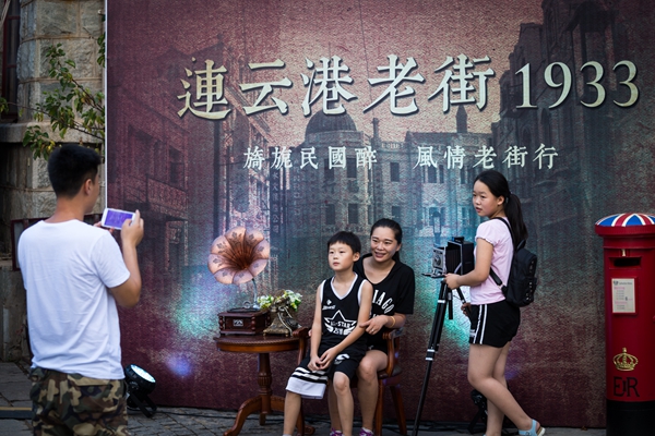 游客在连云古镇民国风情场景中流连忘返。何康鹏摄