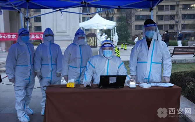 在东药王洞社区,田晓薇和其他志愿者紧密配合,敲门登记,逐户排查,叮嘱大家下楼做核酸检测。几栋楼下来,汗水湿透了后背。20日下午5时,高强和妻子田晓薇交接班,让妻子回家照顾停课的孩子,自己穿上防护服,开始志愿服务工作。“请大家做好个人防护,保持安全距离。”在核酸检测点,这句话高强不知说了多少次,嗓子都快哑了。
