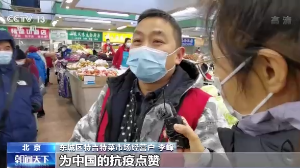 北京东城区特吉特菜市场经营户 李峰:为中国的抗疫点赞,(为)2022年的冬奥会点赞。