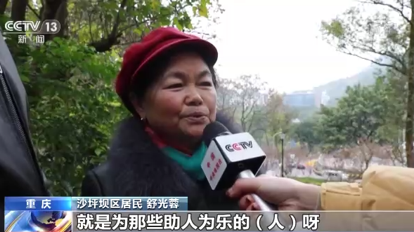 重庆沙坪坝区居民 舒光蓉:就是为那些助人为乐的(人)呀,还有为这些辛勤付出的农民工啊,这些(我)都会为他点赞,因为他们是最普通,最平凡的劳动者,就是为我们这里的小区改造,整个歌乐山(环境)的改造是做出了一份很大的贡献,所以说应该给最平凡的人点赞,没有他们的辛勤付出,也没有我们这么美丽的环境。