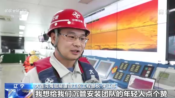 大连湾海底隧道四工区工程部长 宋江伟:我想给我们沉管安装团队的年轻人点个赞,都是刚毕业的(年轻人),学习、奋斗、拼搏这种精神。