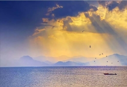 红花依碧水,仙湖早争春。在北方正冰天雪地的时候,云南澄江抚仙湖畔却红翠相染,山花烂漫,依旧温暖如春。冬樱花与绿树、蓝天、碧水,共同构成一幅色彩斑斓的山水画卷。(新华网)