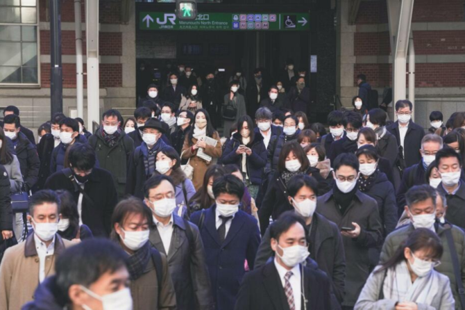 日本东京4日,人们带着口罩出勤(图片来源:日媒)