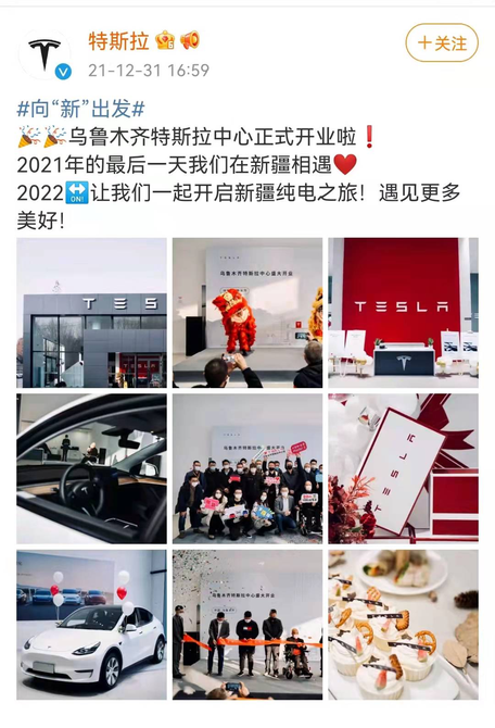 2021年最后一天,新疆首家特斯拉中心正式开业。特斯拉在官方微博上公布这一消息后,引发外界大量关注。有美国政客近日以所谓新疆“人权问题”攻击特斯拉,还有反华组织鼓噪其关店。中国社科院美国研究所研究员吕祥分析认为,美国国内某些势力反对特斯拉在新疆设店反映出美国对华经贸政策的前后矛盾,而美国利用完全捏造出来的“新疆问题”来限制企业的发展,也让美国本国企业陷入两难境地。