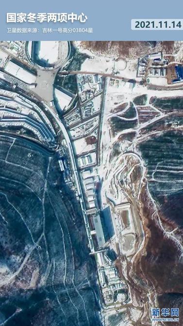 这是正在进行人工造雪的北京2022年冬奥会张家口赛区国家冬季两项中心(2021年11月25日无人机拍摄)。新华社记者 杨世尧摄
